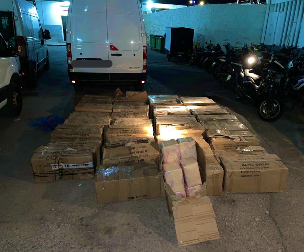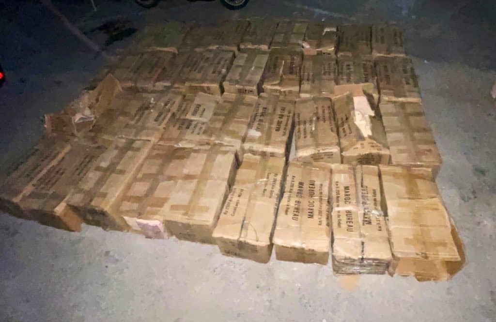 Les deux suspects ont été arrêtés en coordination avec la Gendarmerie Royale au niveau du poste de péage sur l’autoroute à l’entrée de la ville d’Agadir, immédiatement après leur arrivée à bord d’un véhicule utilitaire de transport touristique portant de fausses plaques d’immatriculation, souligne le communiqué, ajoutant que les opérations de fouilles ont abouti à la saisie de 36 ballots de chira, d’un poids total de 2,120 tonnes, ainsi que d’un ensemble de fausses plaques d’immatriculation et d’armes blanches.